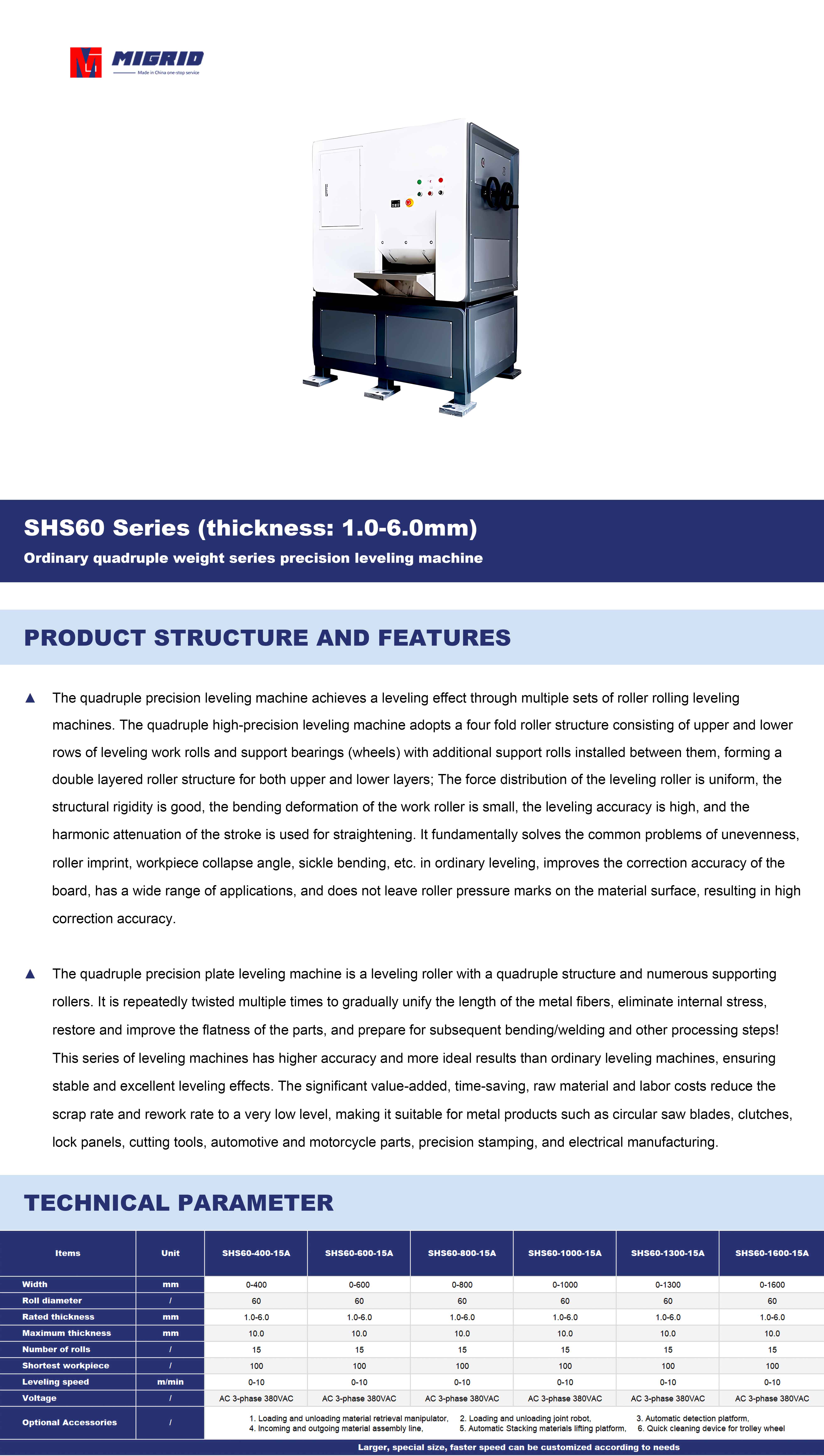 SHS60 Series (thickness: 1.0-6.0mm)--Ordinary quadruple weight series precision leveling machine