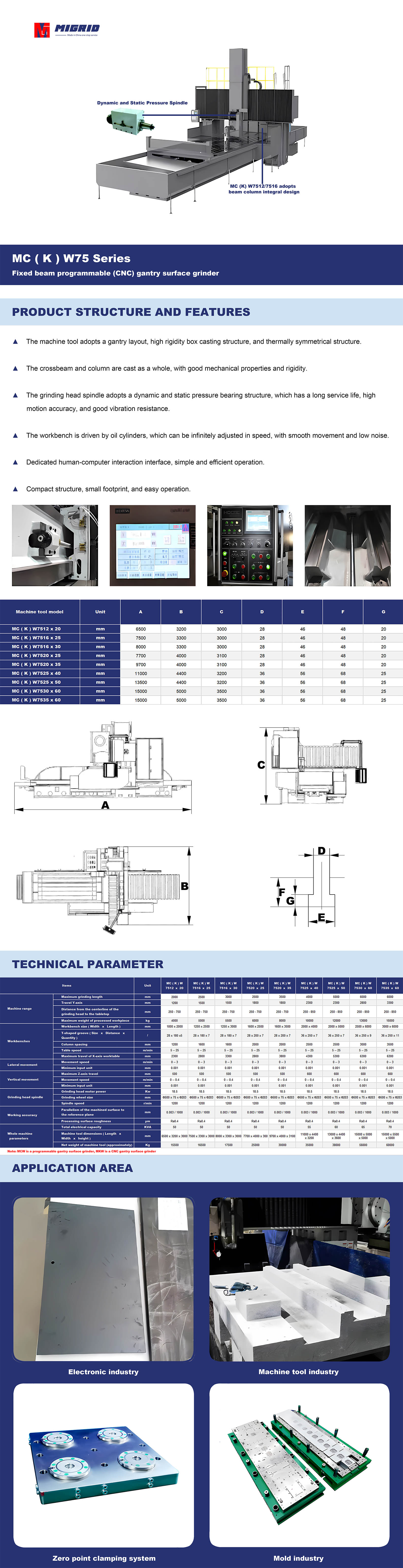 MC ( K ) W75 Series--Fixed beam programmable (CNC) gantry surface grinder