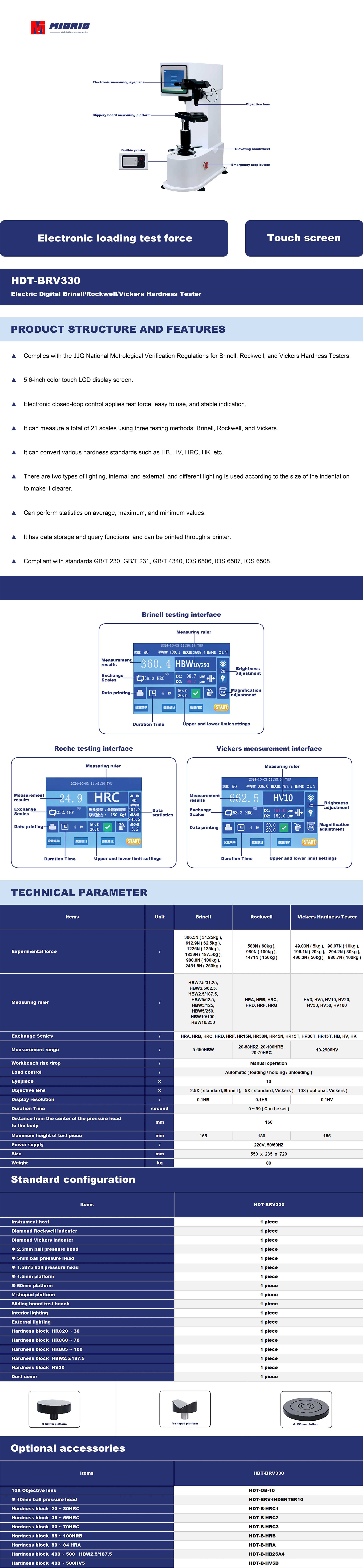 HDT-BRV330--Electric Digital Brinell/Rockwell/Vickers Hardness Tester
